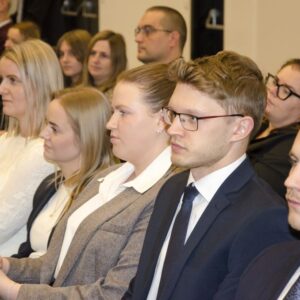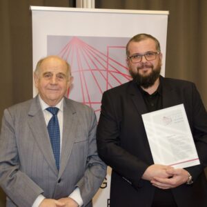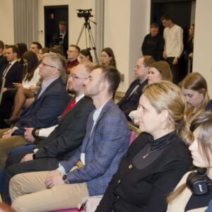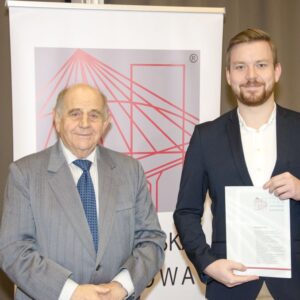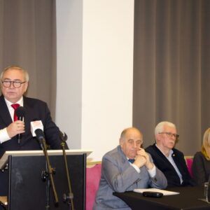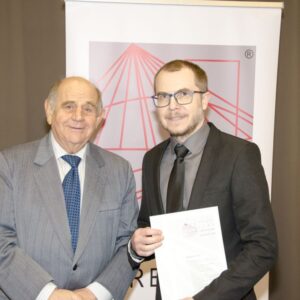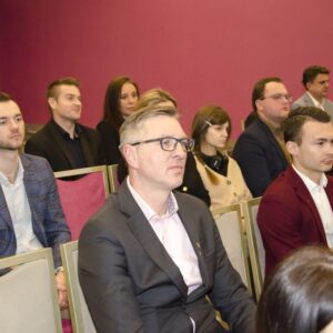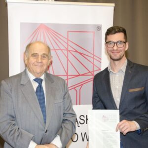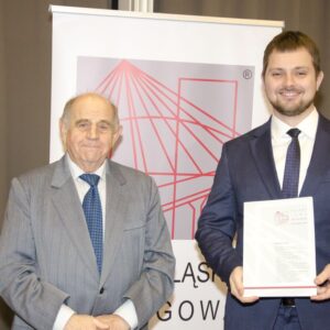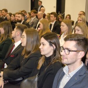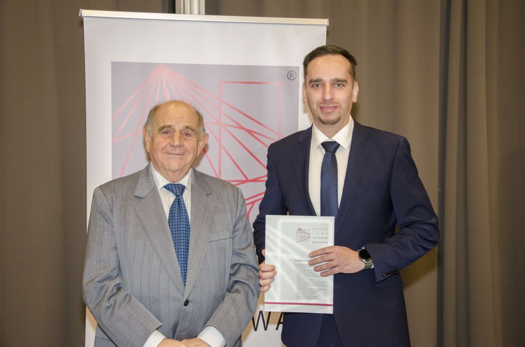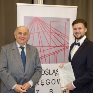 Następnie głos zabrał mgr inż. Janusz Szczepański, Przewodniczący Okręgowej Rady Dolnośląskiej Okręgowej Izby Inżynierów Budownictwa. W swoim wystąpieniu pogratulował nowym inżynierom uzyskania uprawnień, zwracając uwagę, że zawód inżyniera budownictwa wiąże się z dużą odpowiedzialnością i licznymi wyzwaniami, ale jednocześnie daje ogromną satysfakcję oraz radość z możliwości tworzenia obiektów służących kolejnym pokoleniom. Przedstawił również procedury związane z wpisem na listę członków Izby.