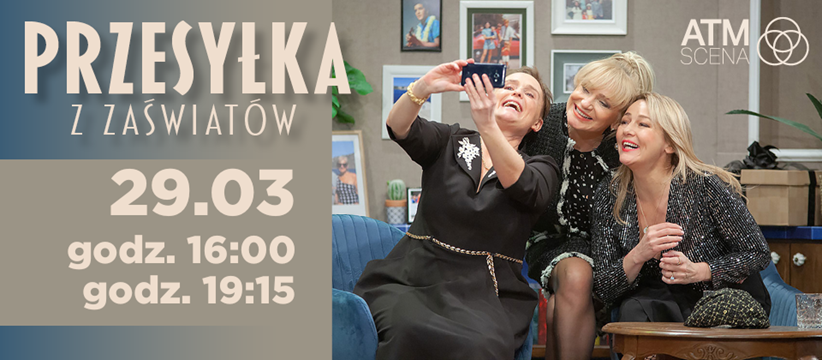 PRZESYŁKA Z ZAŚWIATÓW to również znakomite kreacje aktorskie, a także potwierdzenie tez, że na spełnienie marzeń nigdy nie jest za późno i lepiej umrzeć ze śmiechu, niż żyć bez radości! Na scenie zobaczymy: Kingę Preis, Katarzynę Żak, Katarzynę Kwiatkowską, Justynę Ducką, Kubę Gąsowskiego/Michała Kucharskiego.